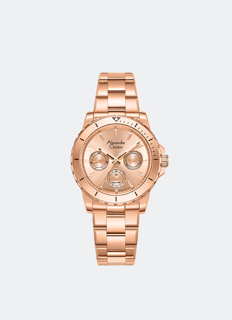 25th Anniversary Limited Edition Gift Set Multifunction Boyfriend Rose Gold Dial Stainless Steel Ceramic & Genuine Calf Leather - 35mm AC6141XXVBRGLN