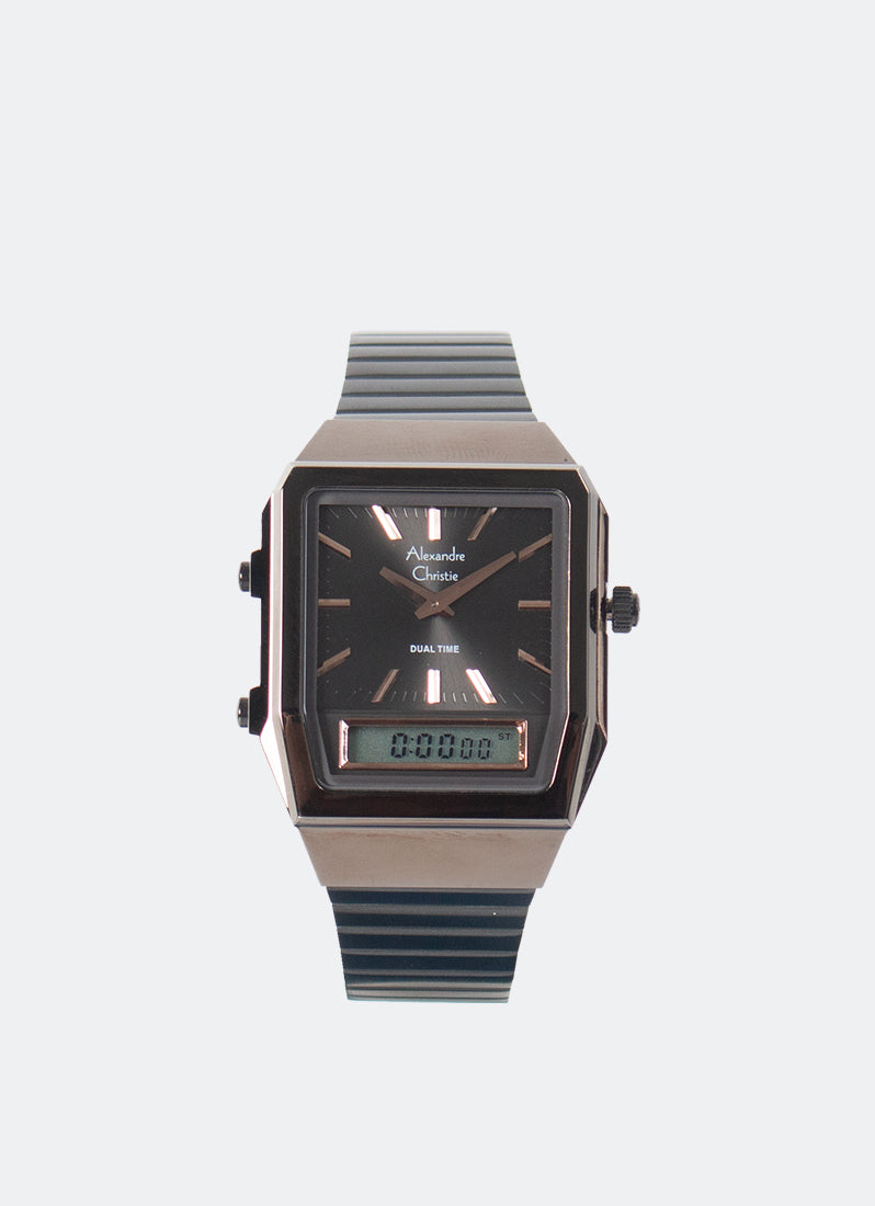 Tampil modern dan fungsional dengan AC DiGi analog digital watch wanita. Jam tangan ini menggabungkan desain analog dan digital dalam satu tampilan elegan, dengan dial hitam yang stylish dan case stainless steel berwarna hitam.
