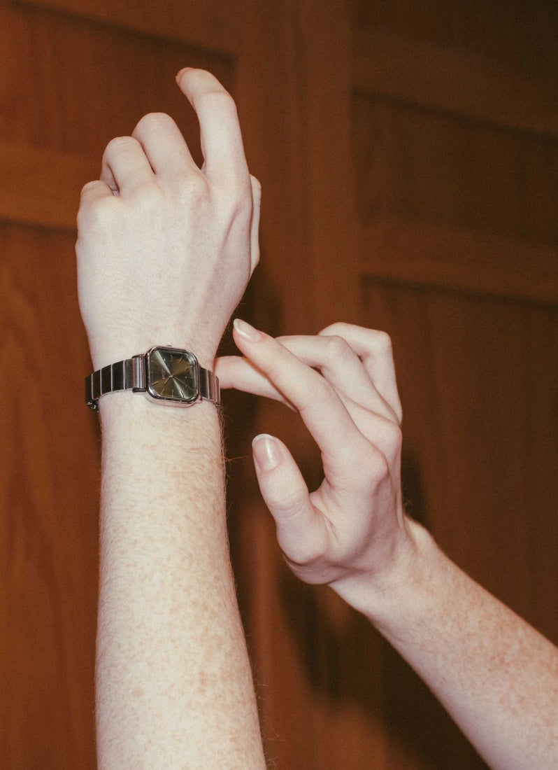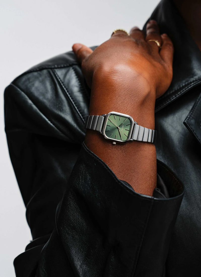 Breda Esther Moss Dial hadir dengan pendekatan modern pada gaya klasik yang berkarakter kuat. Case square 26mm memberi statement yang clean, sementara dial moss green dengan sun-ray finish menampilkan kilau halus yang terasa refined. Desainnya langsung terlihat elegan tanpa perlu effort berlebihan.