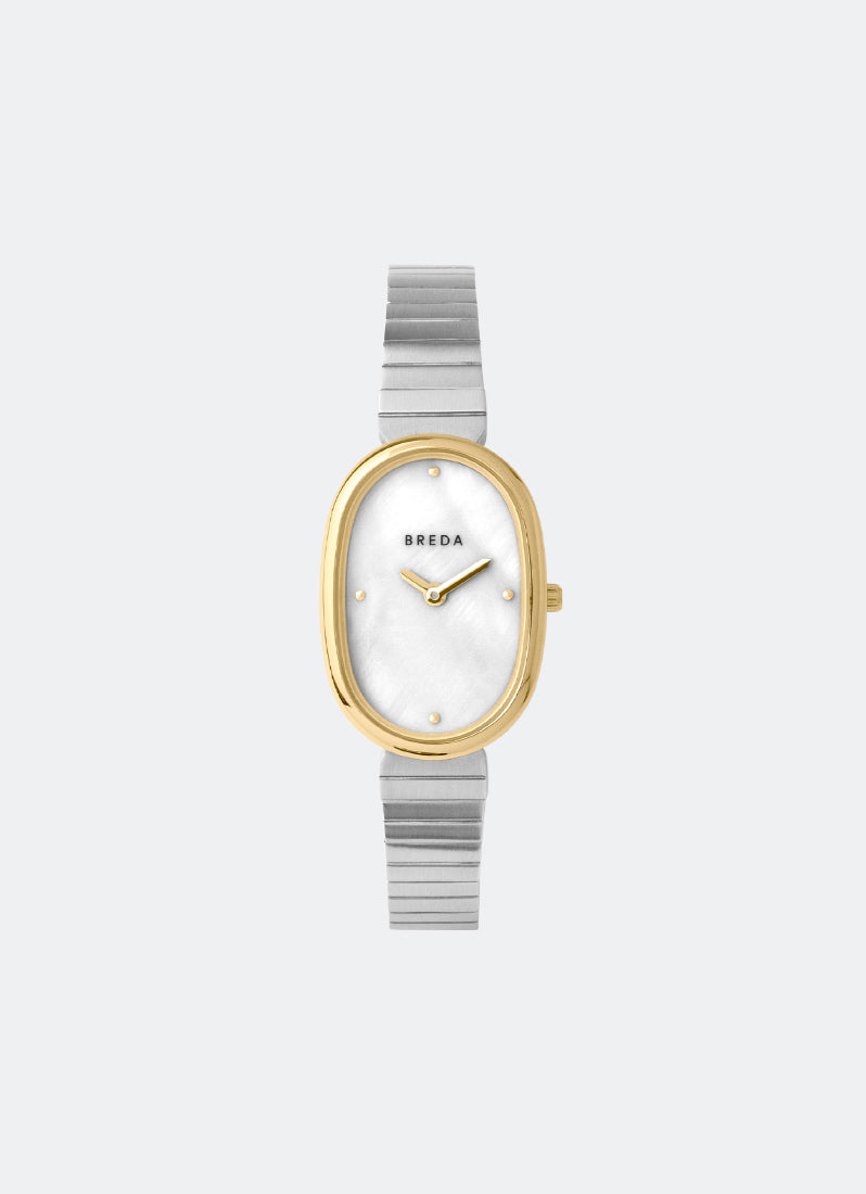 Inspired by days spent in the sun by the water and followed by evenings of indulgence. The Jane carries a delicate 23mm oval case, natural mother of pearl dial and stainless steel bracelet that fastens with a jewelry clasp. An effortlessly elegant and classic style.