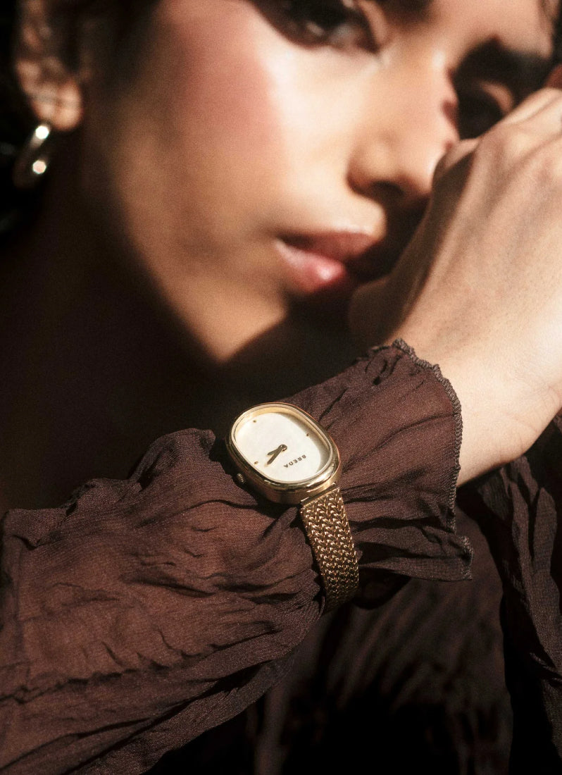 Breda Jane Tethered menghadirkan pesona feminin yang langsung memikat lewat case oval 23mm dan dial champagne mother of pearl yang berkilau lembut. Setiap dial punya tekstur unik, membuat tiap jam terasa eksklusif. Bracelet woven gold-plated memberi sentuhan mewah yang tetap ringan dipakai sepanjang hari. Dengan movement Miyota yang presisi, Breda Jane Tethered jadi aksesori premium yang effortlessly mempercantik tampilanmu.