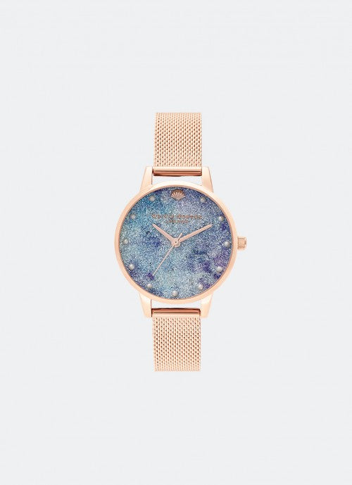 Deep Sea Midi Dial Faux Pearl Markers Rose Gold Mesh - OB16US44
