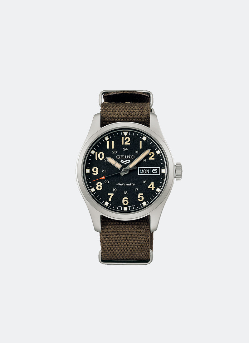 Seiko 5 Sports Automatic Men Black Dial Silver Nylon 36.4mm - SRPJ85K1