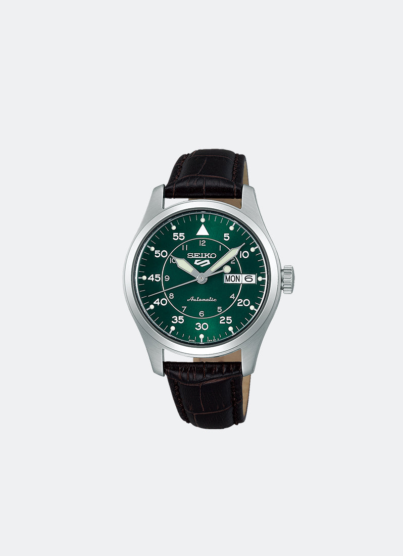 Seiko 5 Sports Automatic Men Green Dial Silver Calfskin 36.4mm - SRPJ89K1
